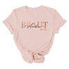 Braut im Serifenschriftart mit Namen, T-Shirt Pastellrosa