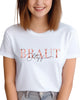 Braut im Serifenschriftart mit Namen, T-Shirt weiß